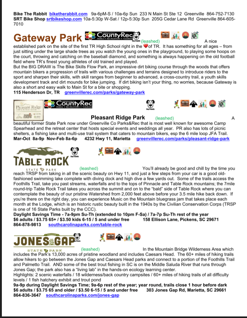 And they’re all either on or a stone’s throw from the Swamp Rabbit Trail that runs right through town and on to our beautiful new Trailblazer Park.
